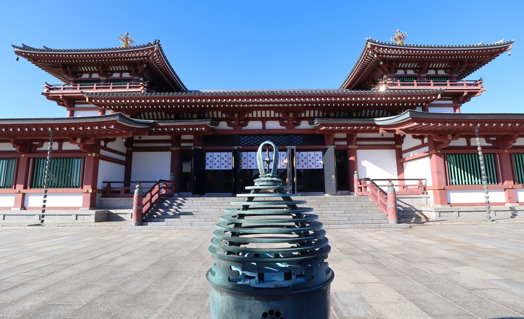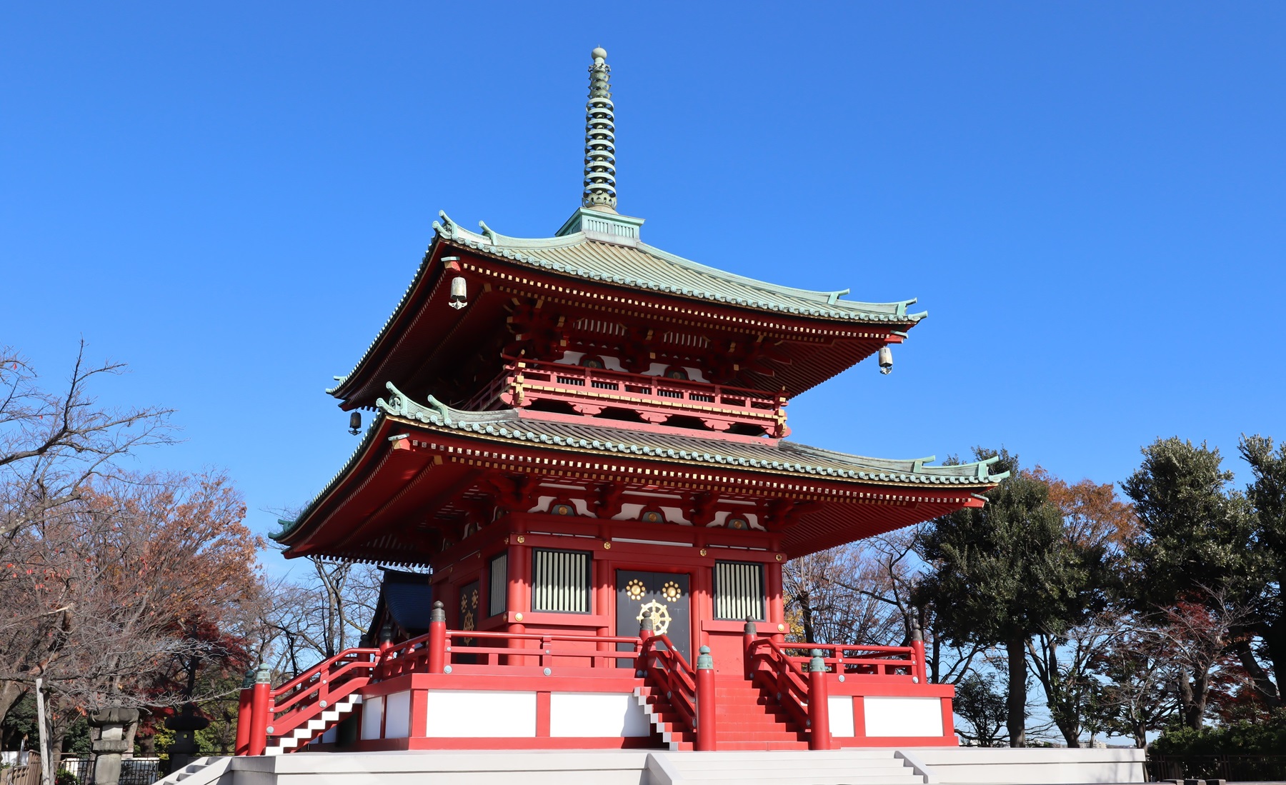 二重塔・仏舎利殿 昭和27年に比叡山延暦寺より奉迎した釈迦の「仏舎利」と昭和35年に遷灯された「不滅の法灯」が祀られています
