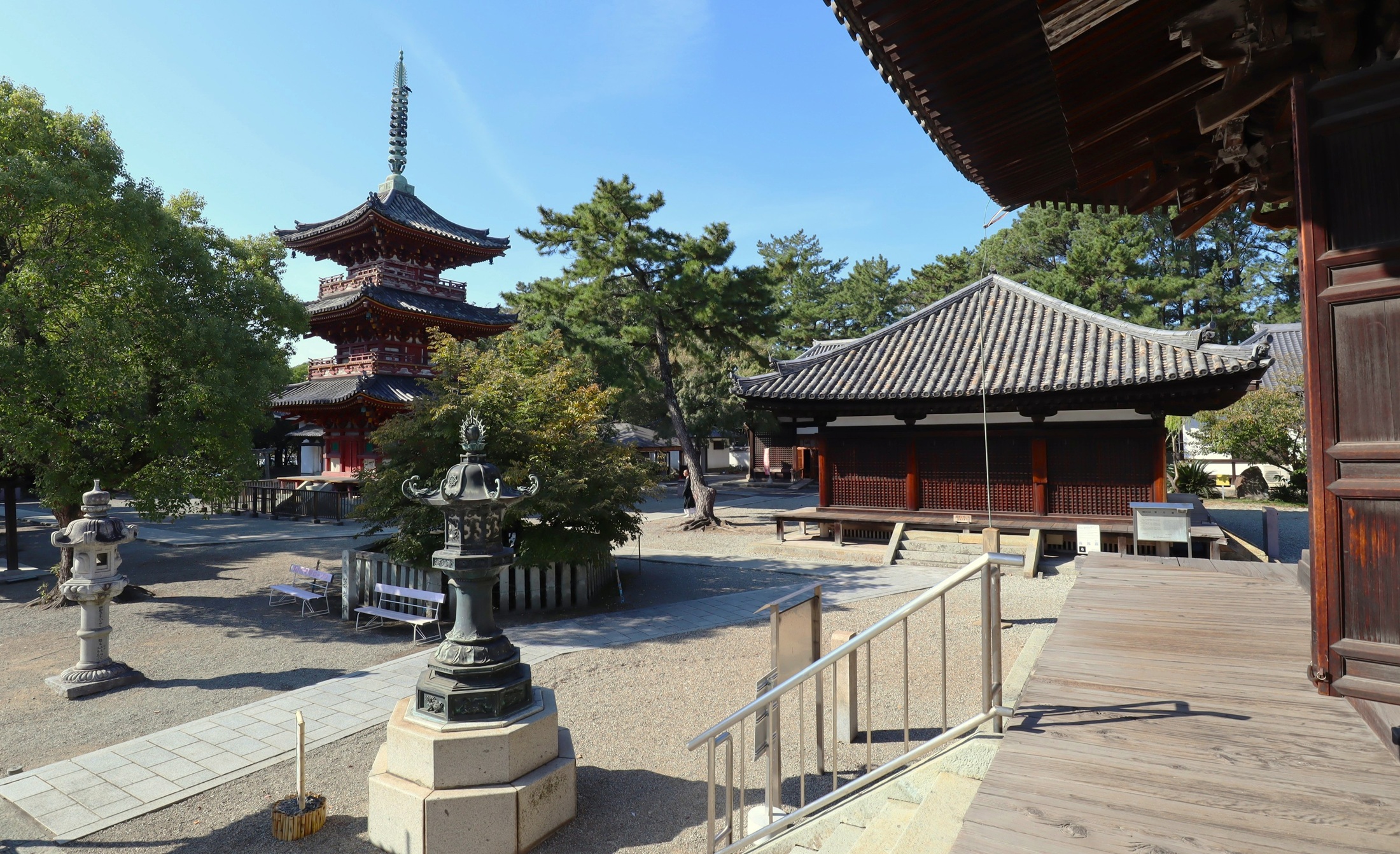 本堂からの三重塔、常行堂