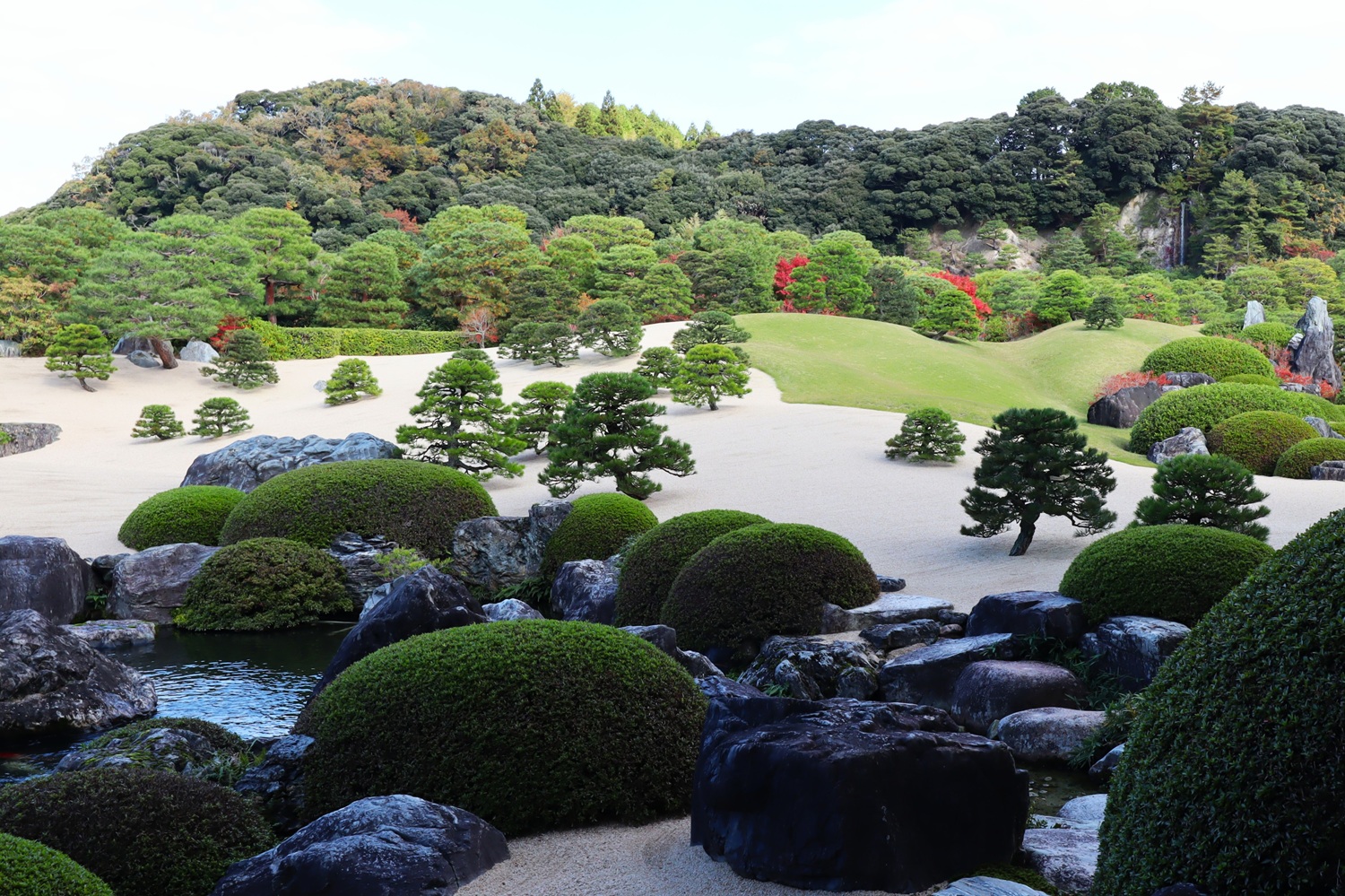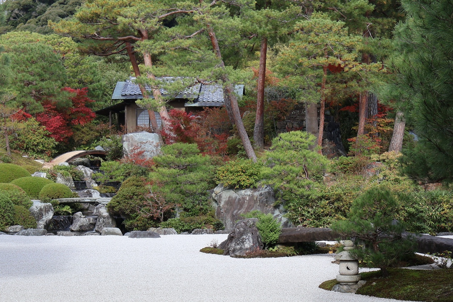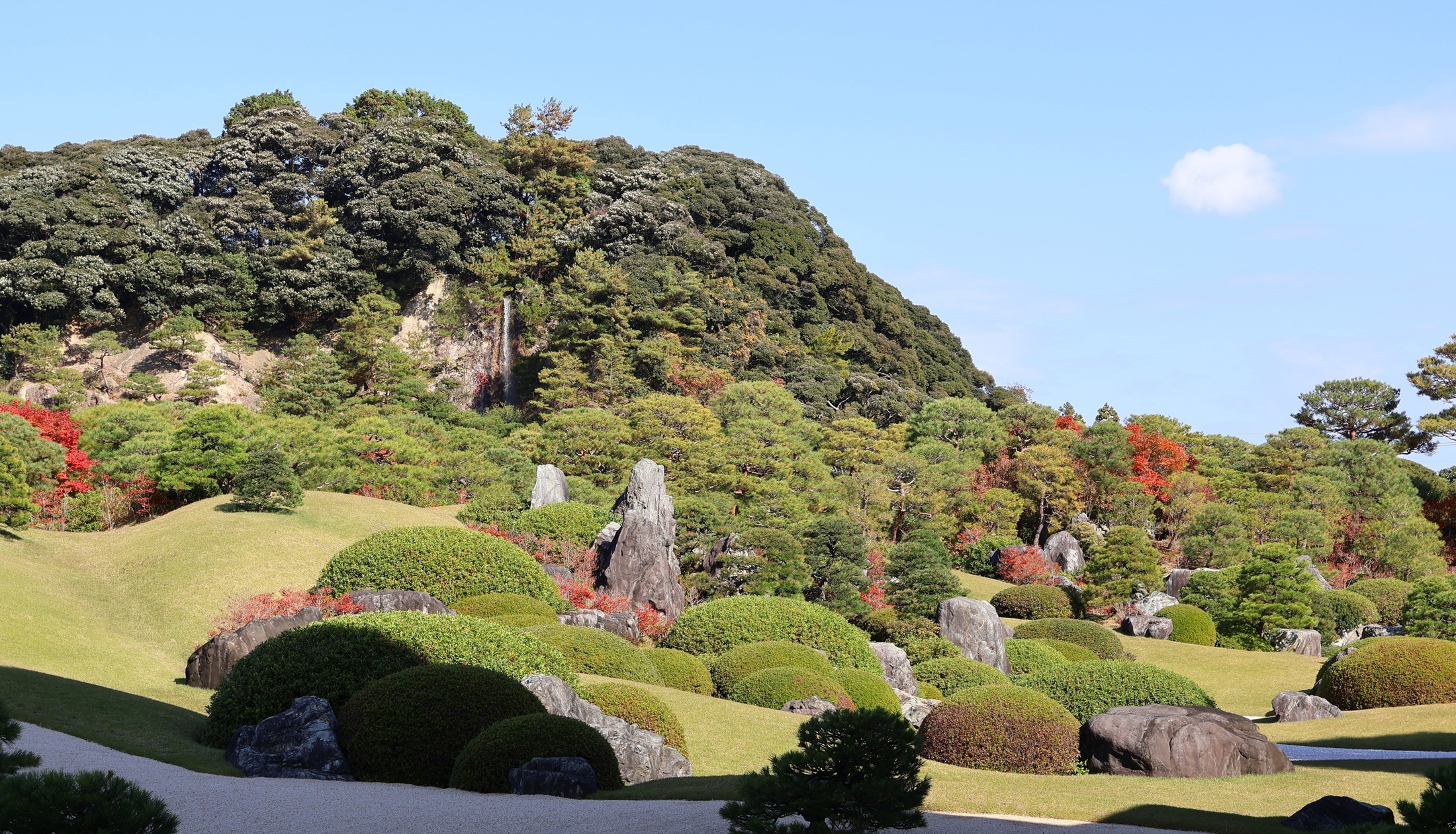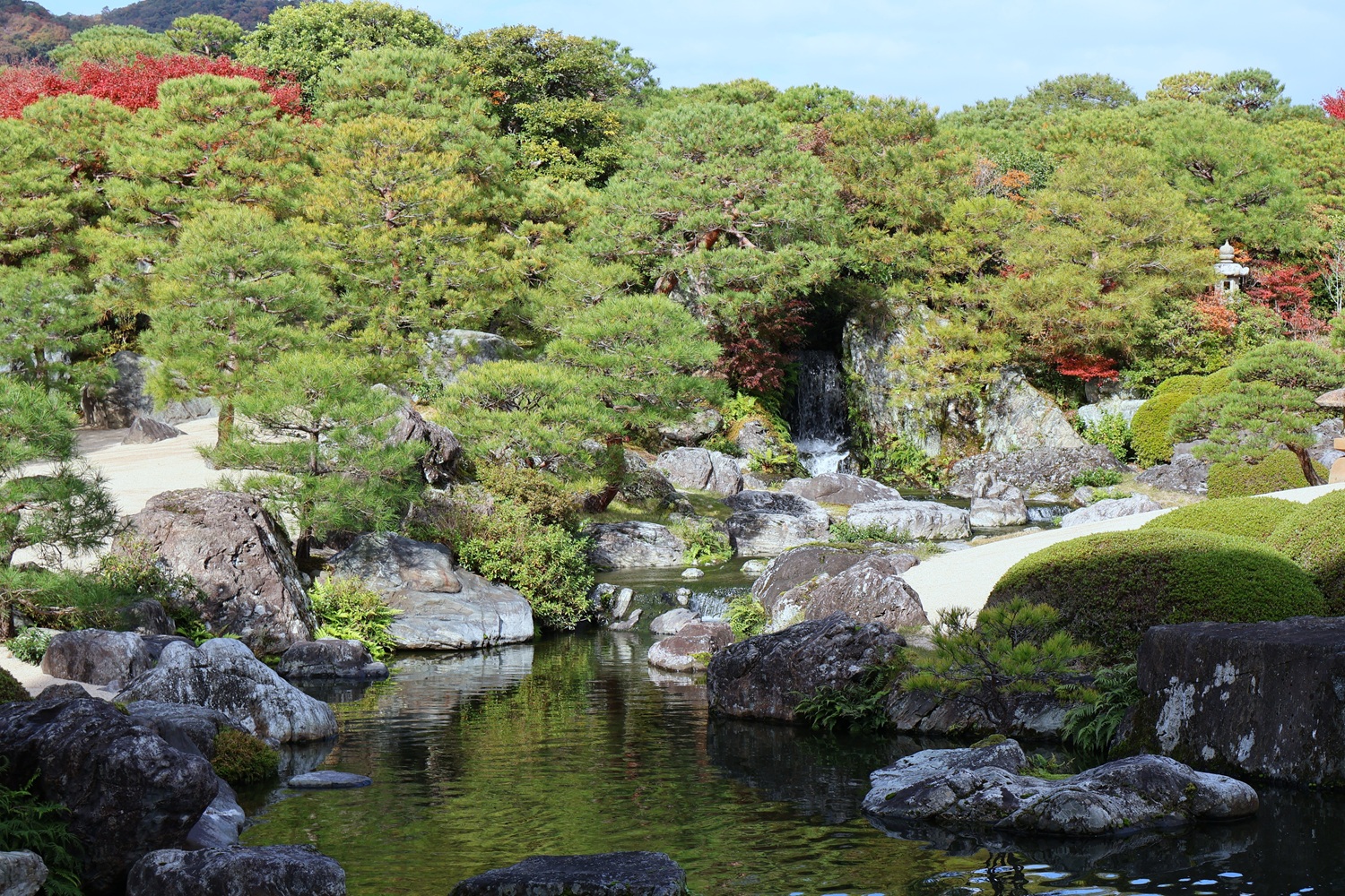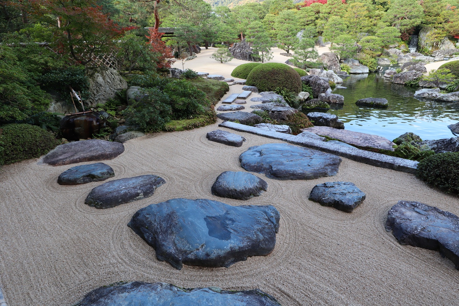 | 白沙青松庭 | 借景の亀鶴の滝 |