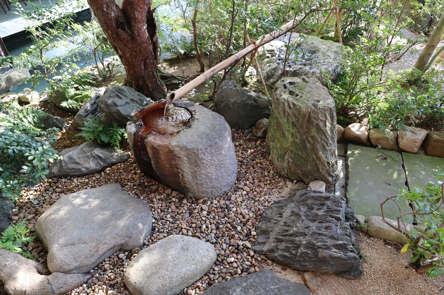 | 入館して最初に見えてくる光景 | 苔庭の石橋 | |