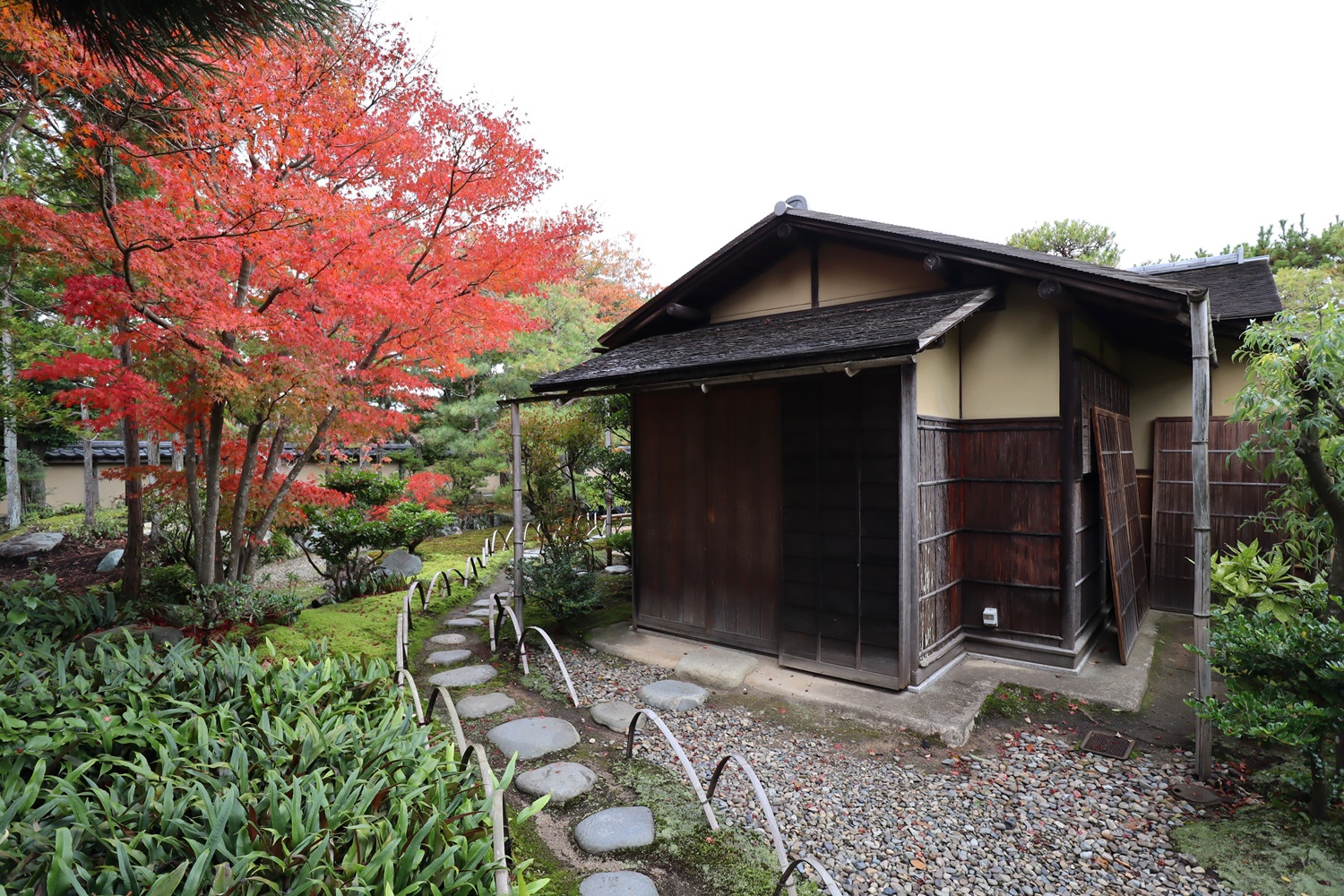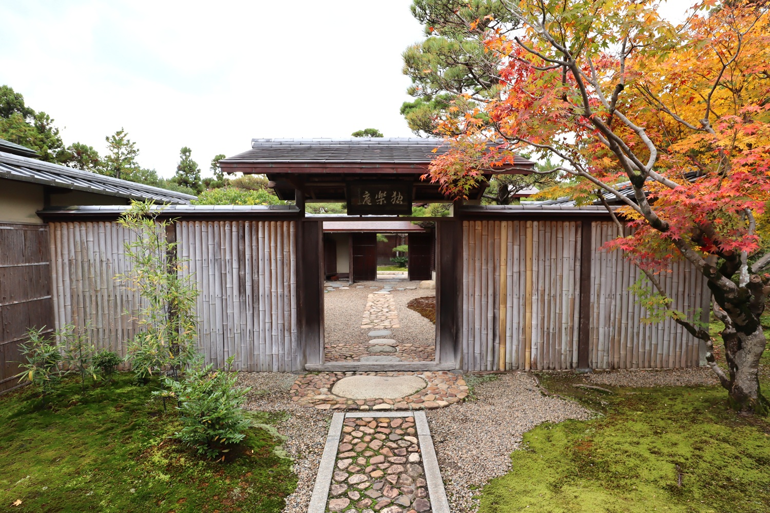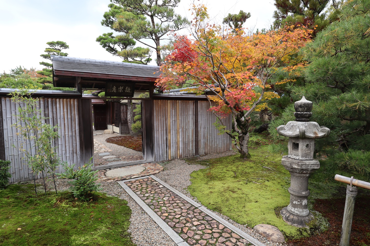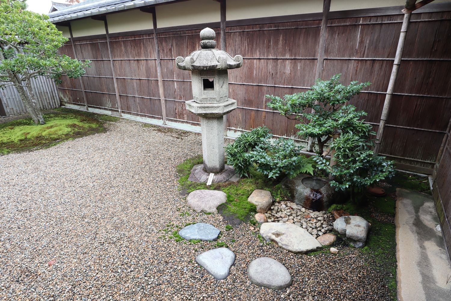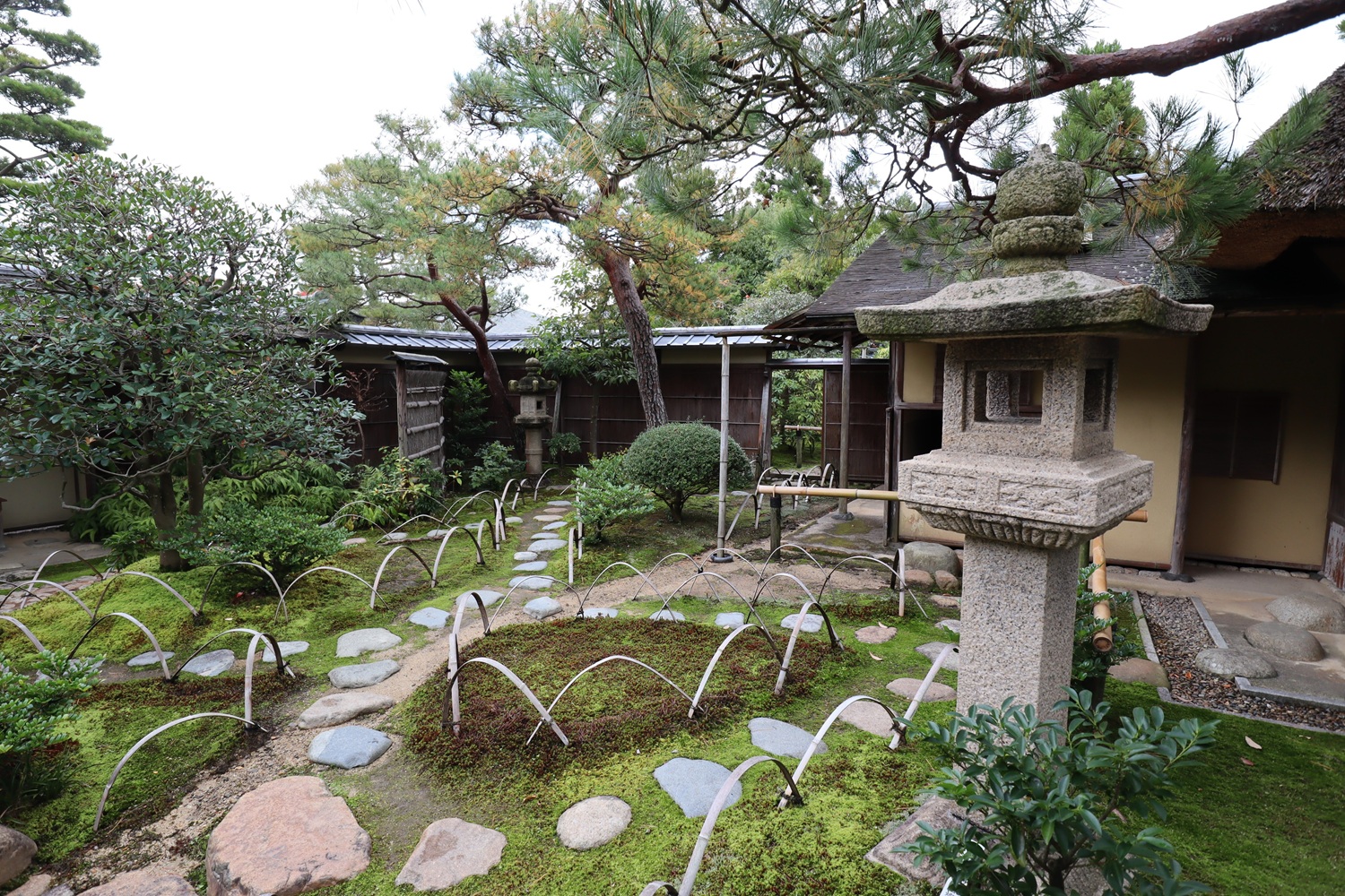 | メモ: | 出雲文化伝承館には旧江角邸とは別に「独楽庵」とその露地が復元されています。松江藩7代藩主松平不昧公が江戸大崎の下屋敷に作庭した「三関三露」と呼ばれる茶室と露地庭を中村昌生による監修でこの地に再現しました。三関は「利休席」「船越席」「泰叟席(たいそう)」の三席が組み合わさった茶室を言います。三露は露地庭が外露地、中露地、内露地の三つに分かれていることを示します。 |
