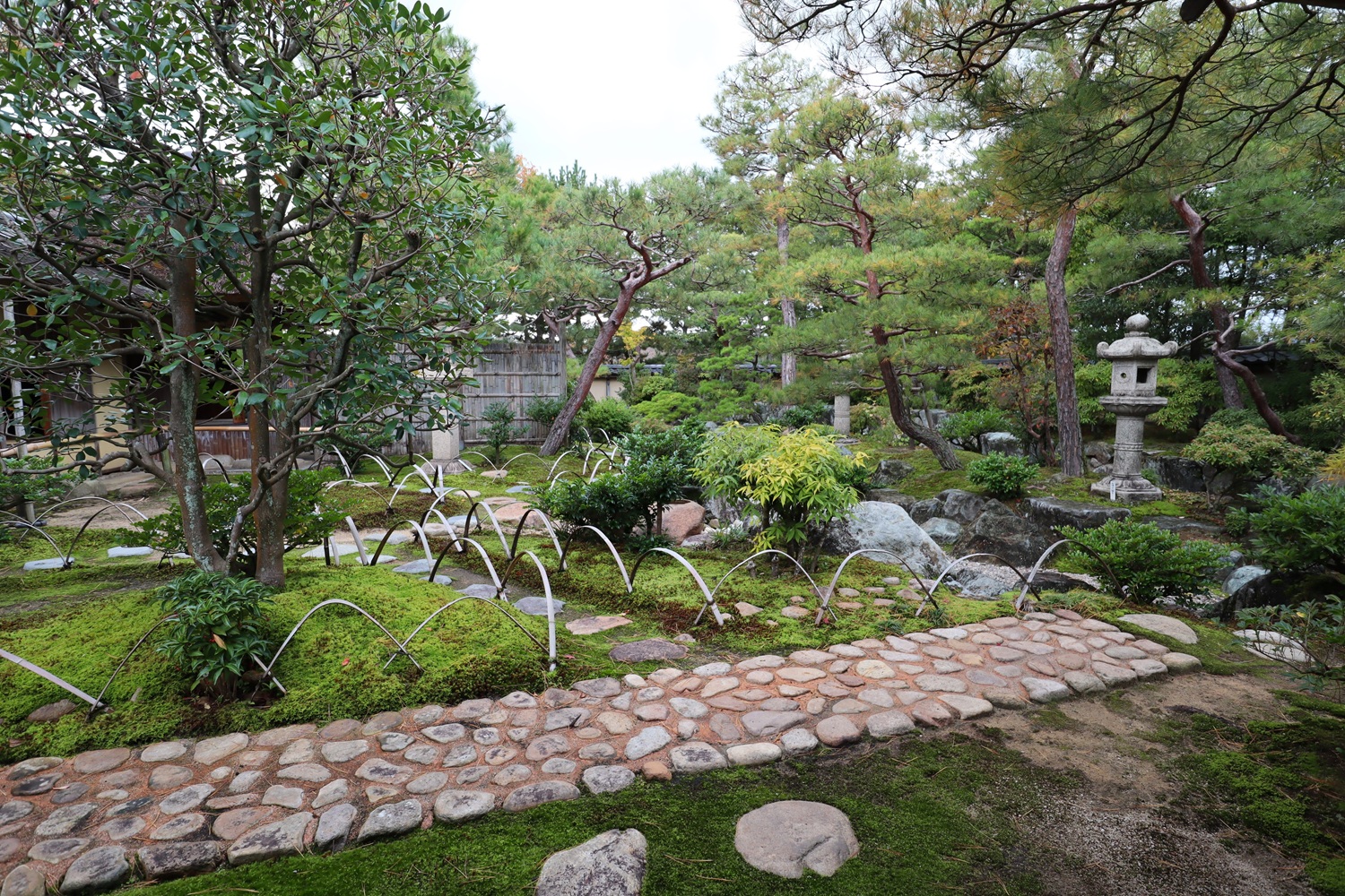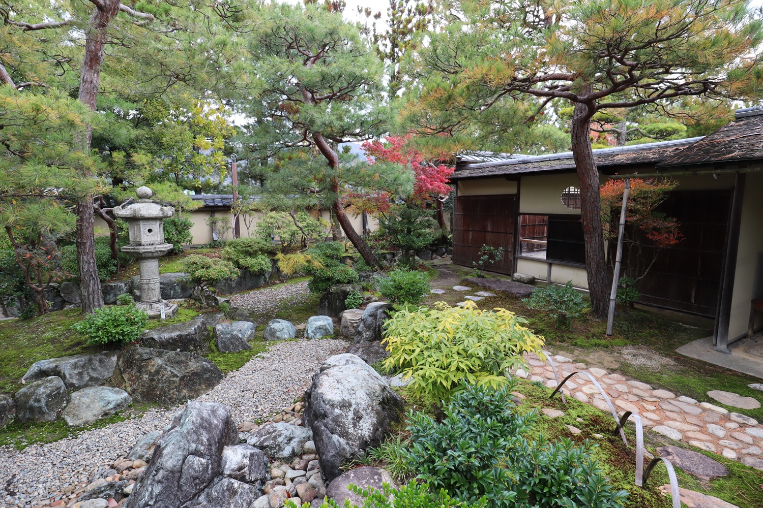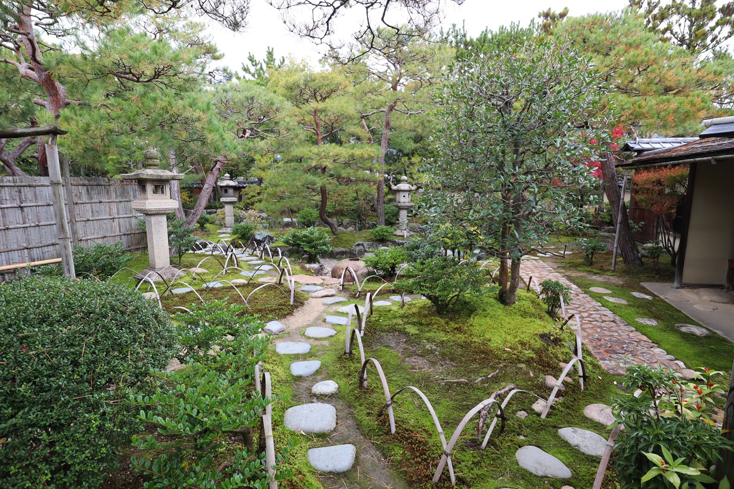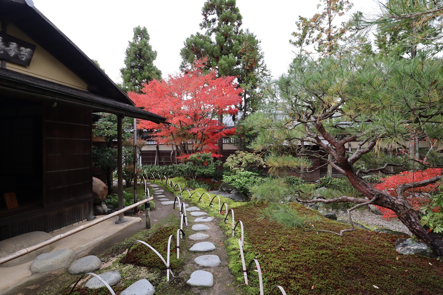 | メモ: | 出雲文化伝承館には旧江角邸とは別に「独楽庵」とその露地が復元されています。松江藩7代藩主松平不昧公が江戸大崎の下屋敷に作庭した「三関三露」と呼ばれる茶室と露地庭を中村昌生による監修でこの地に再現しました。三関は「利休席」「船越席」「泰叟席(たいそう)」の三席が組み合わさった茶室を言います。三露は露地庭が外露地、中露地、内露地の三つに分かれていることを示します。 |