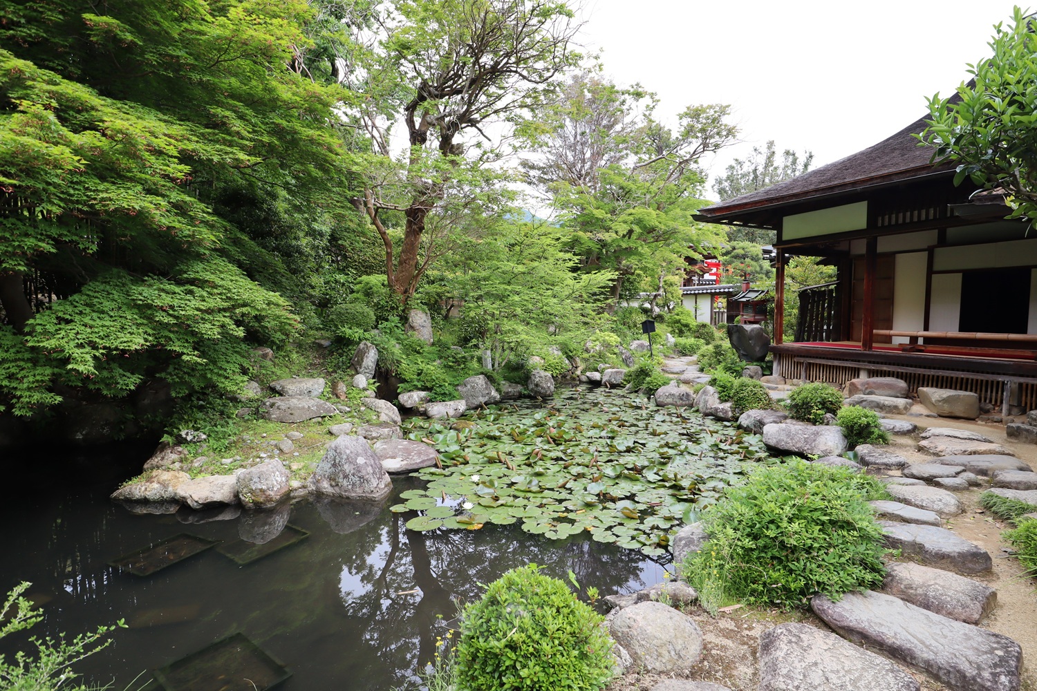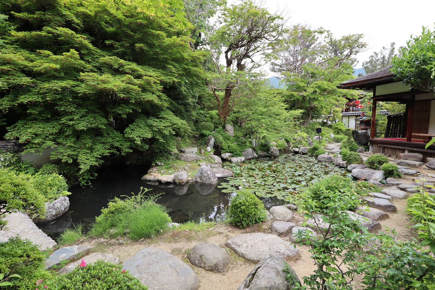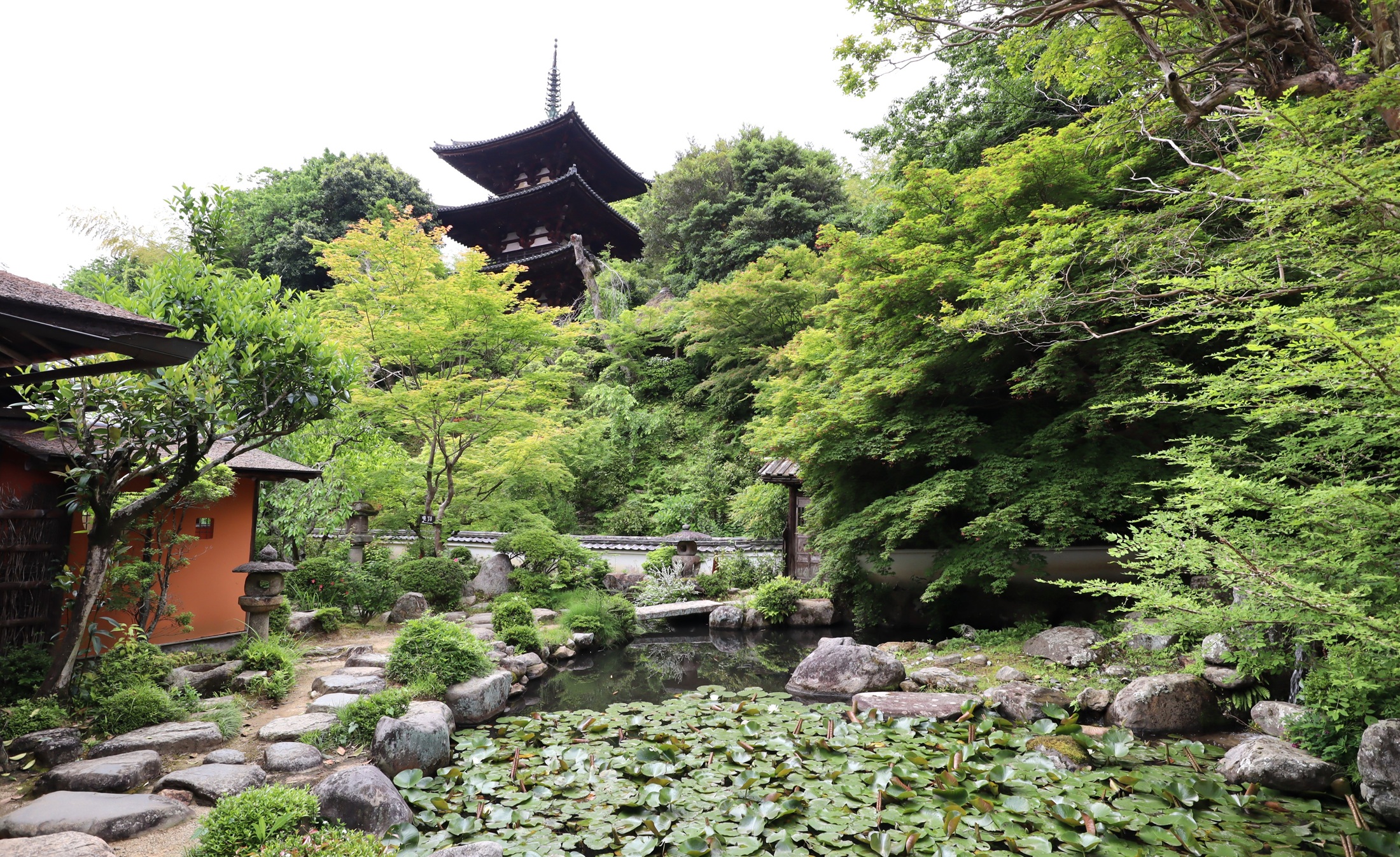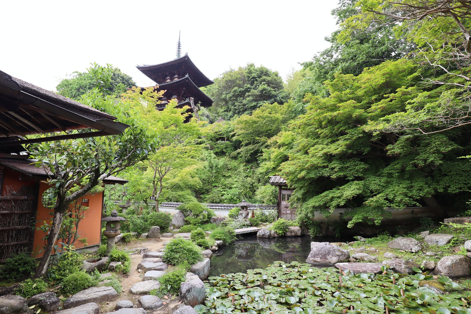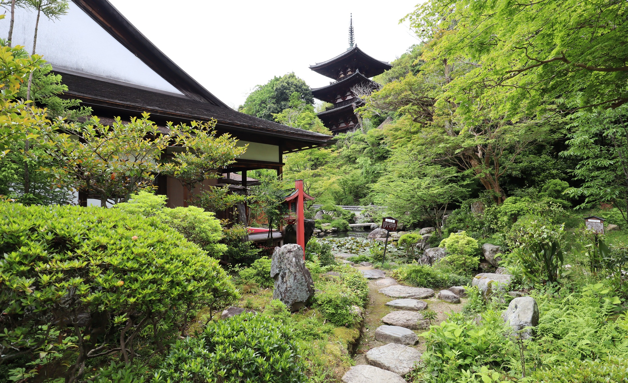 書院から見た庭と東塔 |