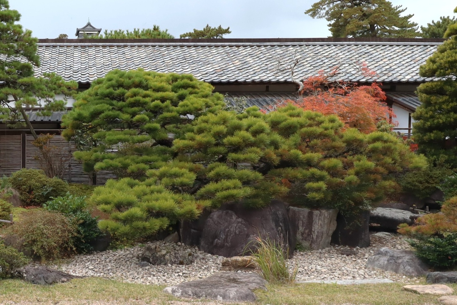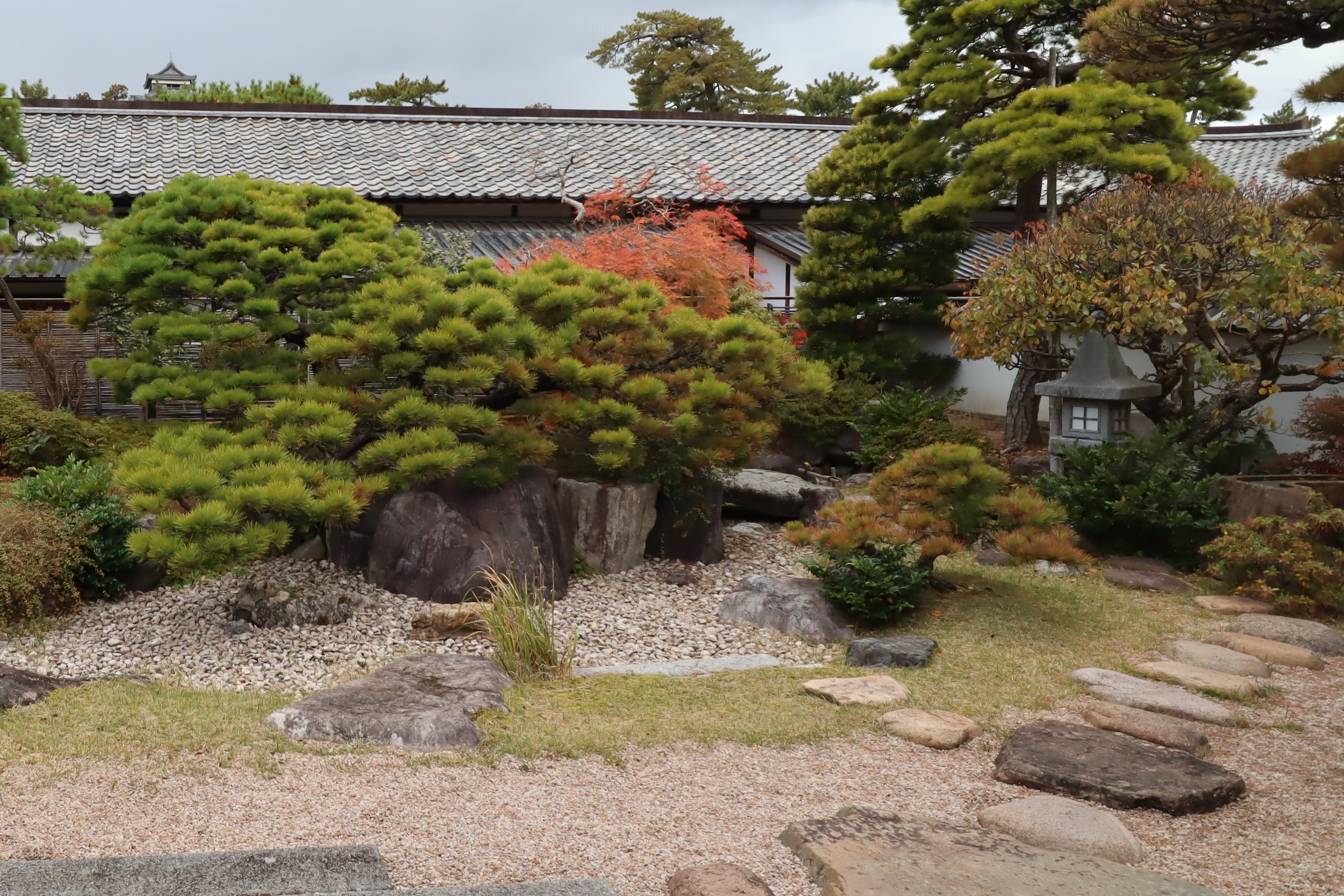 松江城北惣門橋を渡ると正面にあります。外観は武家屋敷を模しており、松江の歴史館ですが日本庭園、伝利休茶室、家老長屋を備えています。庭園は出雲流鑑賞式枯山水庭園です。