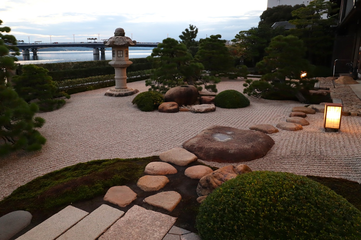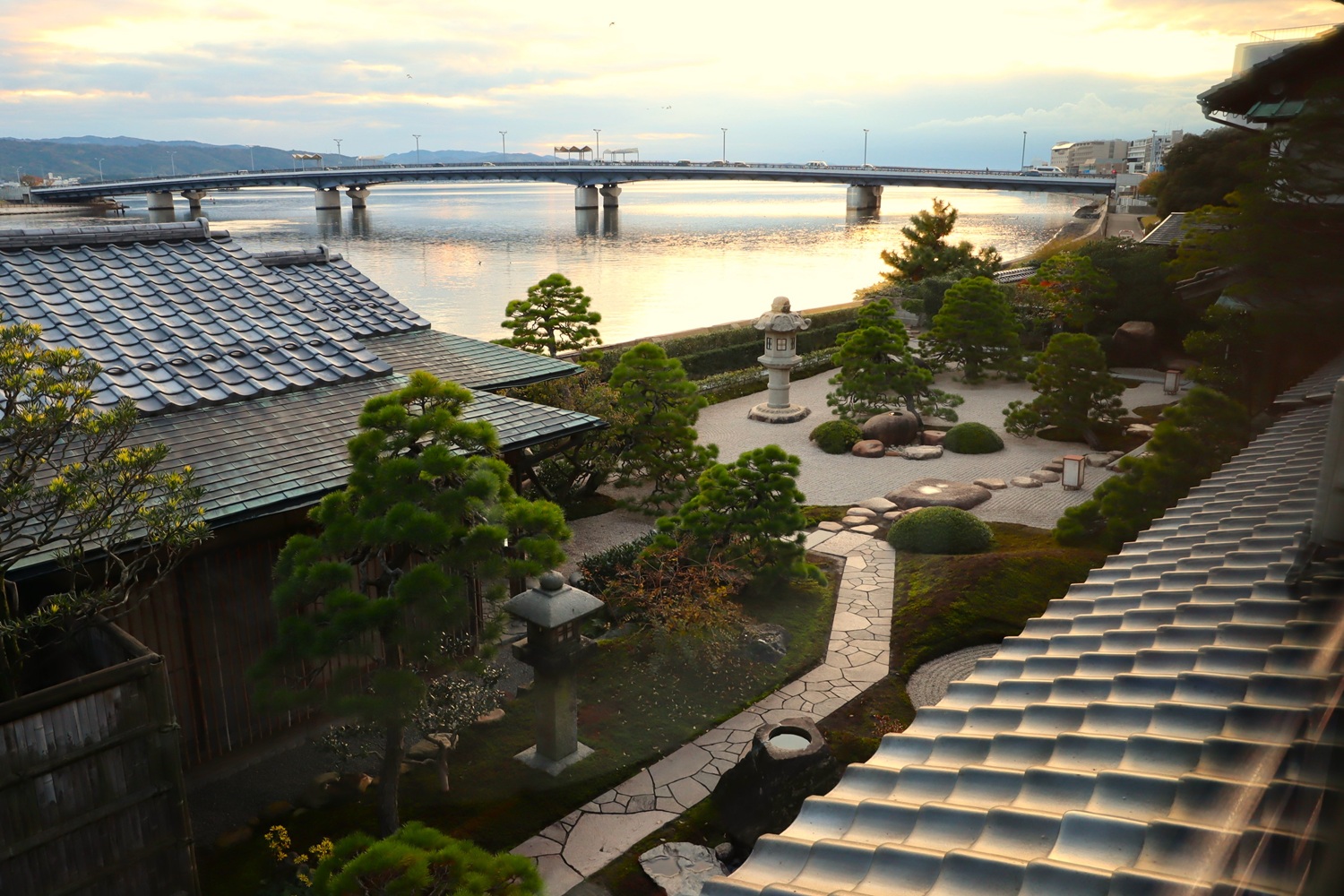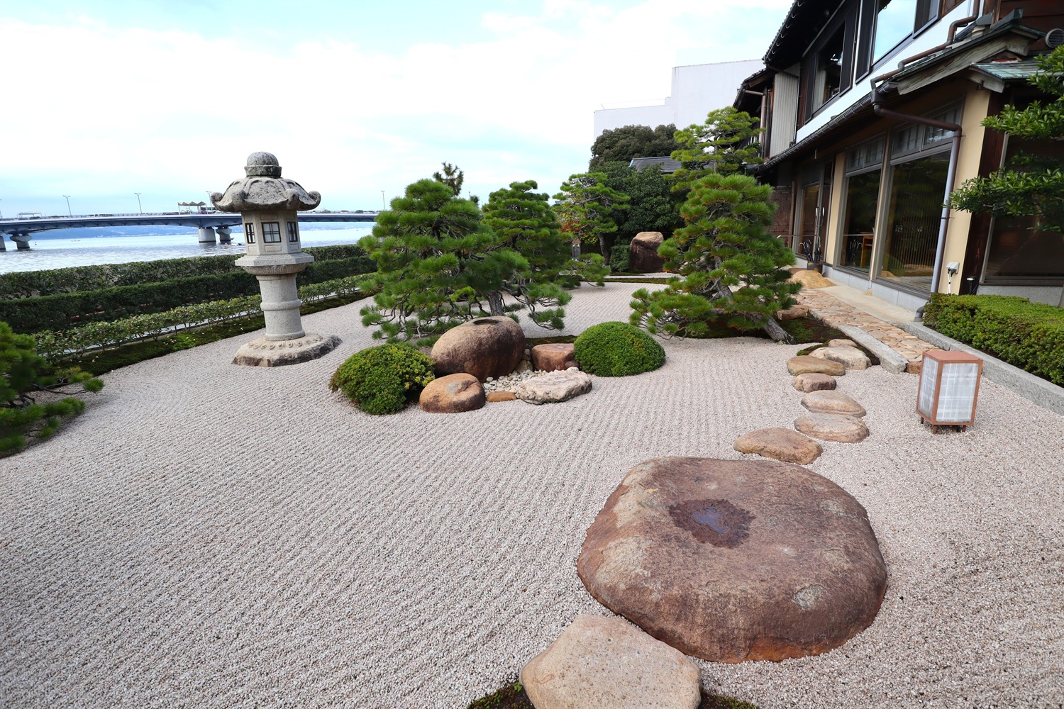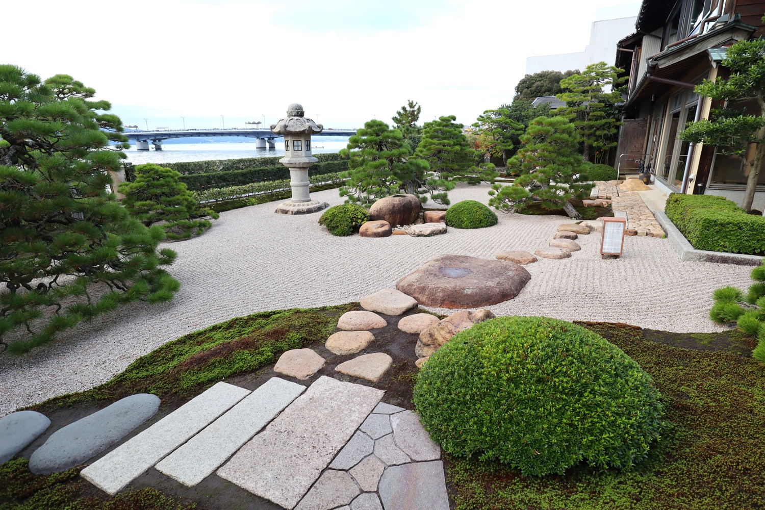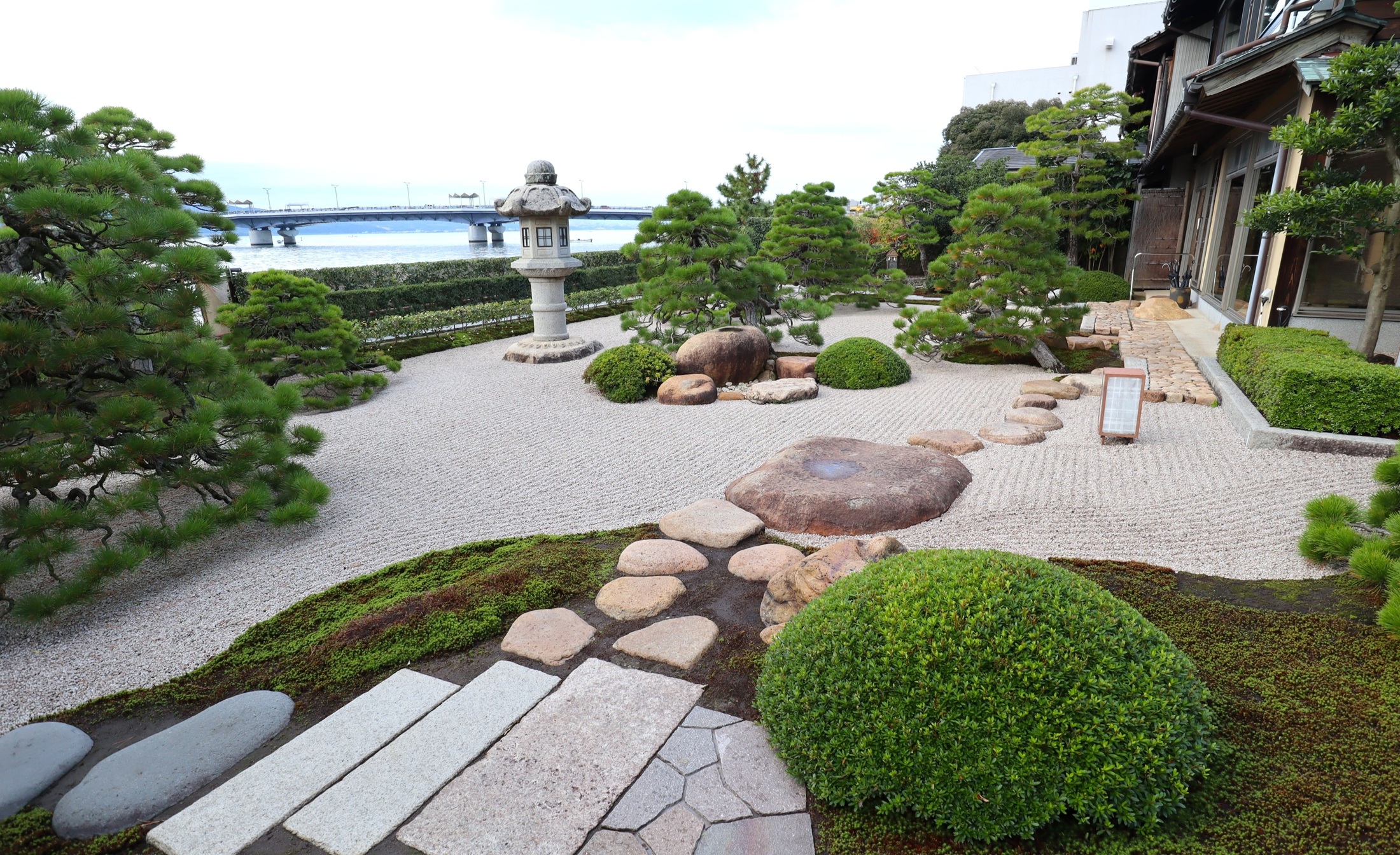 | メモ: | 枯山水回遊式庭園はアメリカの日本庭園専門誌で上位にランキングされています。宍道湖に注ぐ大川を借景とした白砂青松の出雲流庭園です。松江藩主・松平不昧公も好みんだと言う「鯛めし御膳」が名物で、明治から昭和にかけて松江を訪れたたくさんの著名な作家、芸術家等文化人が宿泊しています。 |