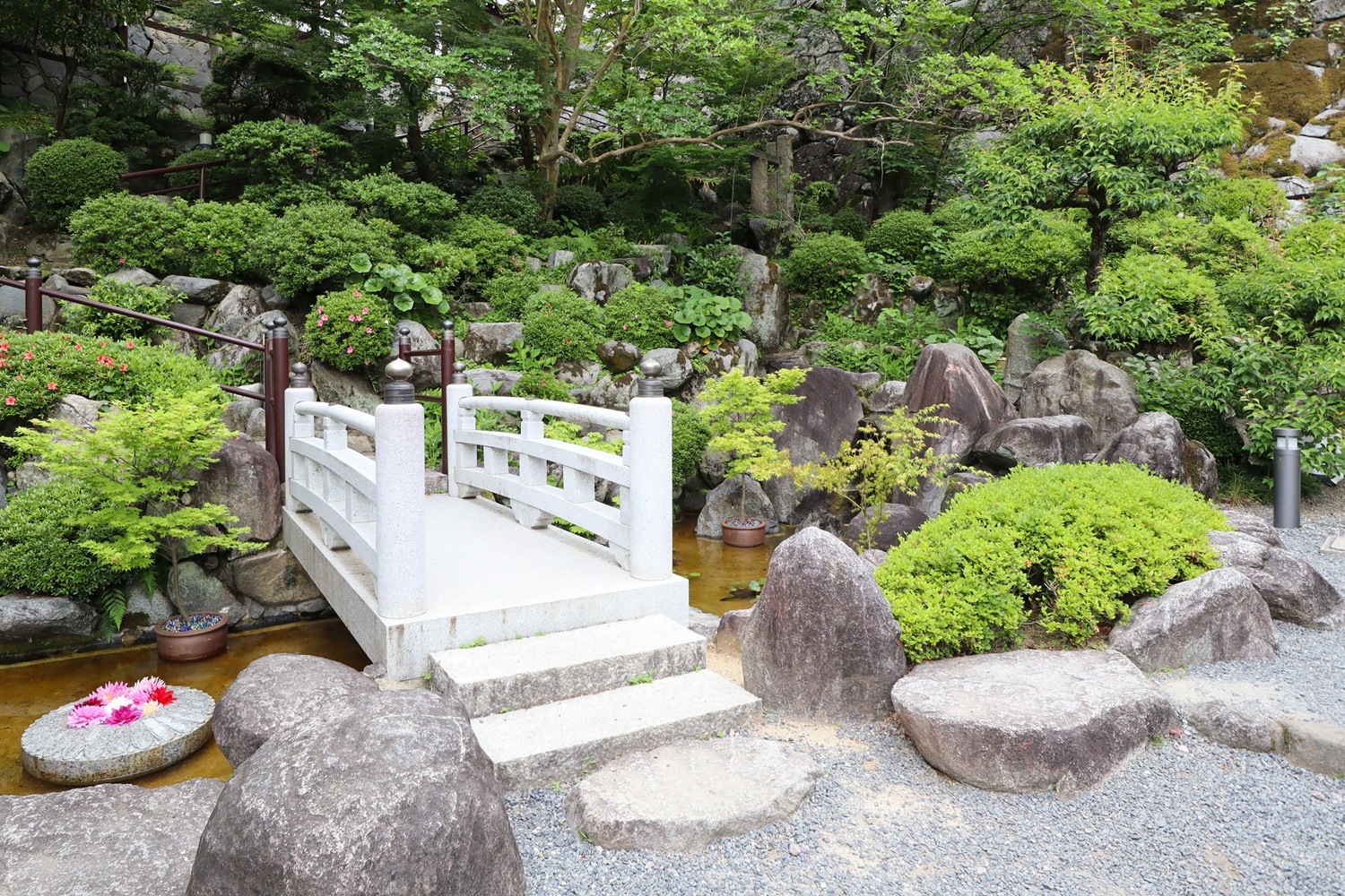 石段途中の枯山水