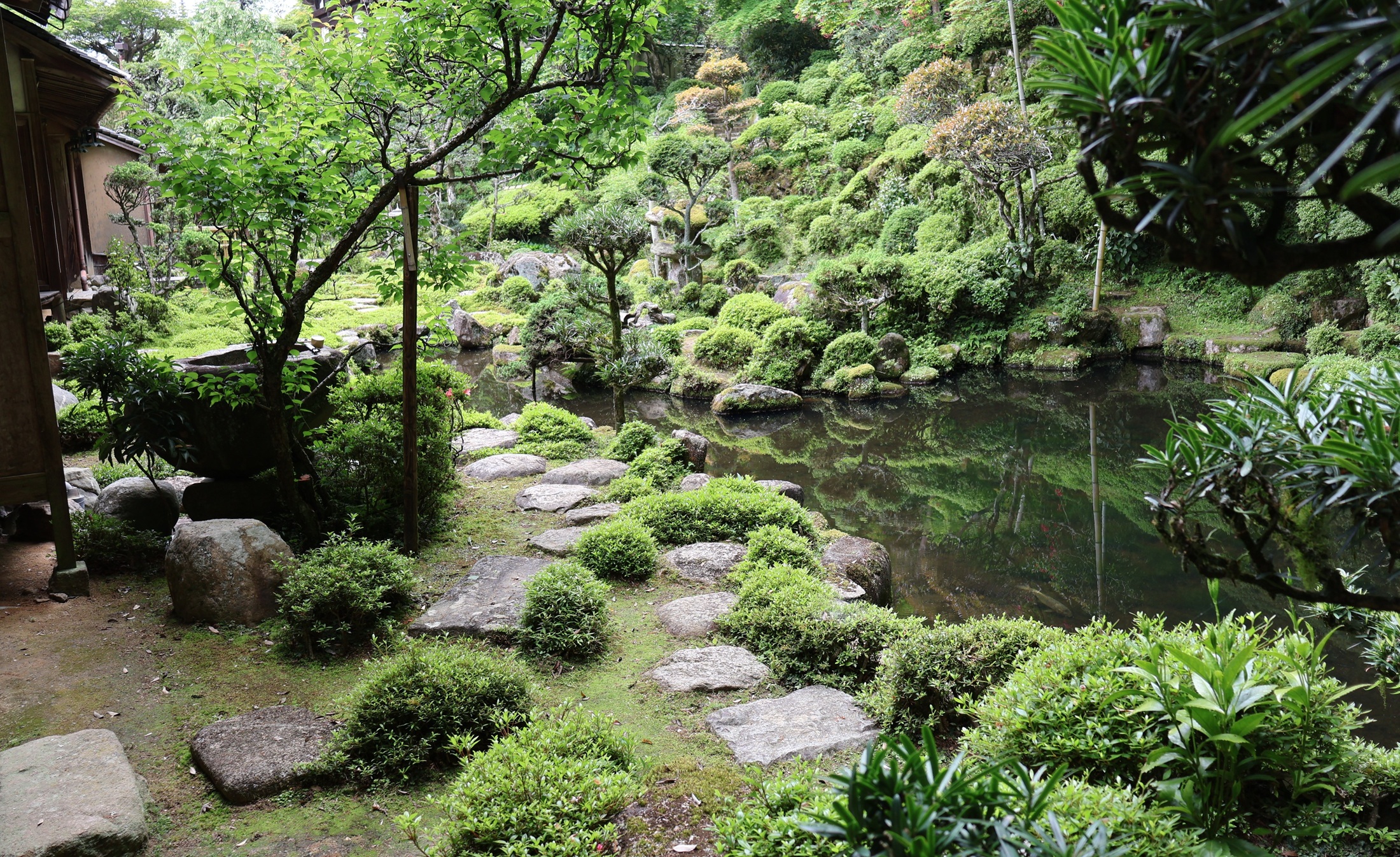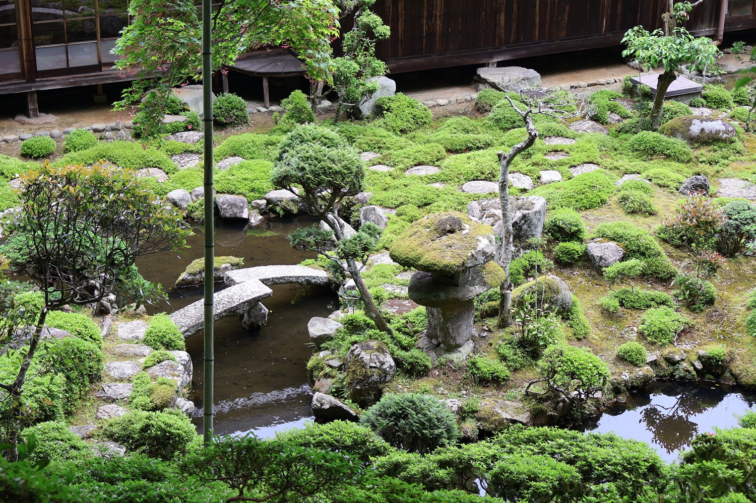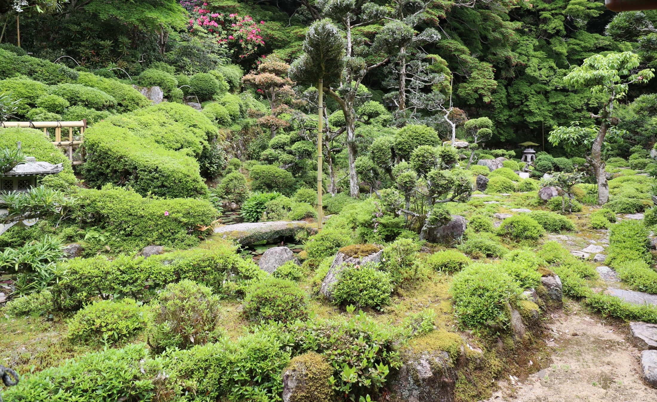 | メモ: | 国宝の西塔を借景とした池泉回遊式庭園で、回遊路に2か所の水琴窟が設置されています。 また、みはらし台からは日本で唯一2棟の国宝三重塔を見ることが出来ます。 庭を正面から観賞するには書院に上がり抹茶をいただく必要があります。 |