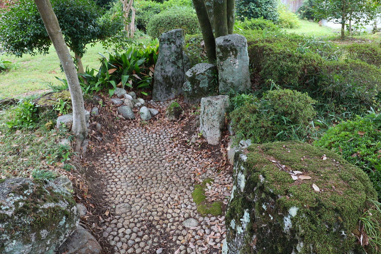 水は抜かれていますがかつては池泉回遊庭園でした |