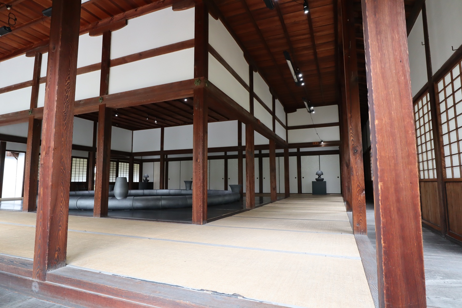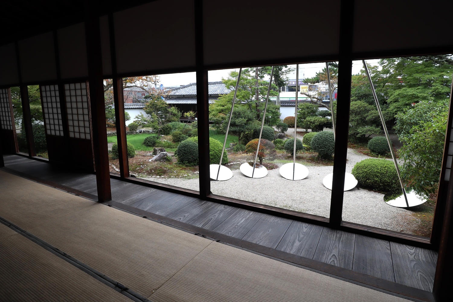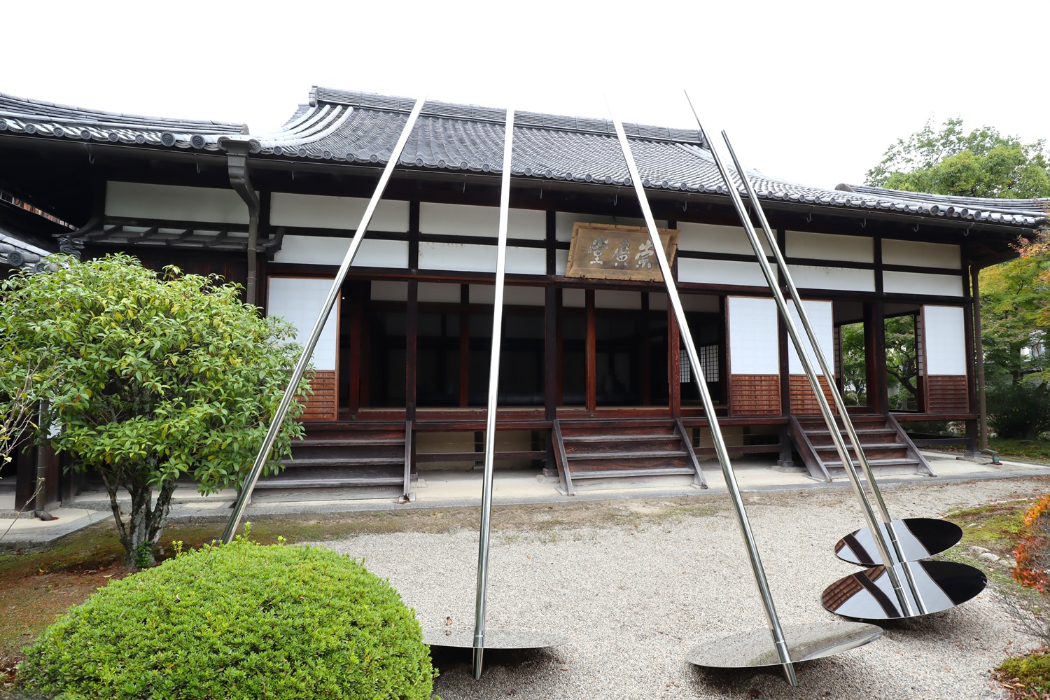 「崇広堂」の扁額は上杉鷹山の筆 金属ポールはアート作品 |
